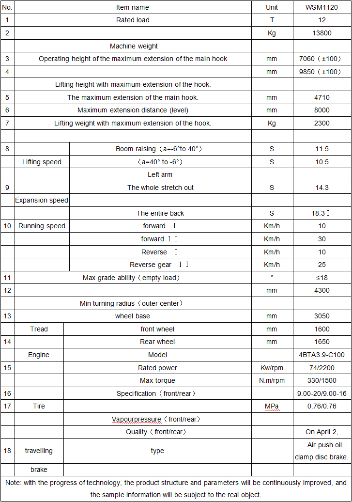 Telescopic forklift loader WSM1120  Production characteristics